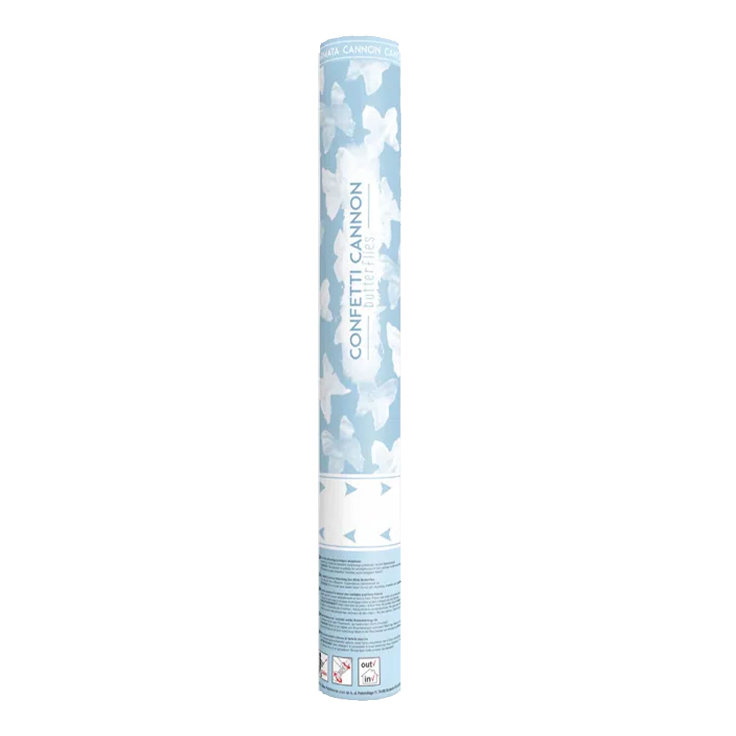 Riktigt fin konfettikanon som skjuter ut vackra vita fjärilar.