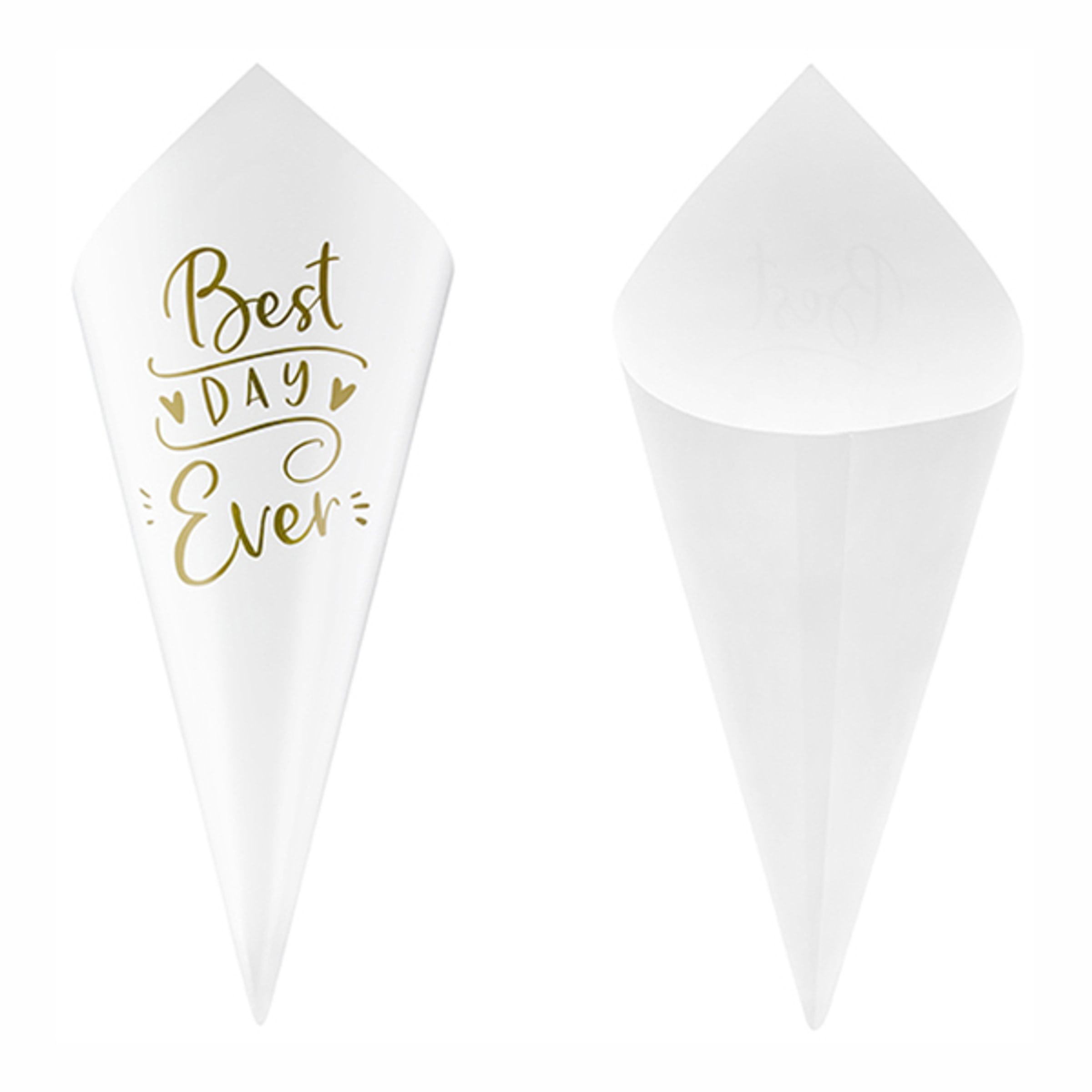 Överraska brudparet med några nävar konfetti på kyrktrappan! De här fina strutarna är vita och pryds av texten "Best day ever" och fylls med konfetti eller ris som sedan kastas på de nygifta efter vigseln! Strutarna går såklart att fylla med andra saker också, som popcorn eller annat valfritt snacks! Funktionell och snygg detalj på festen!