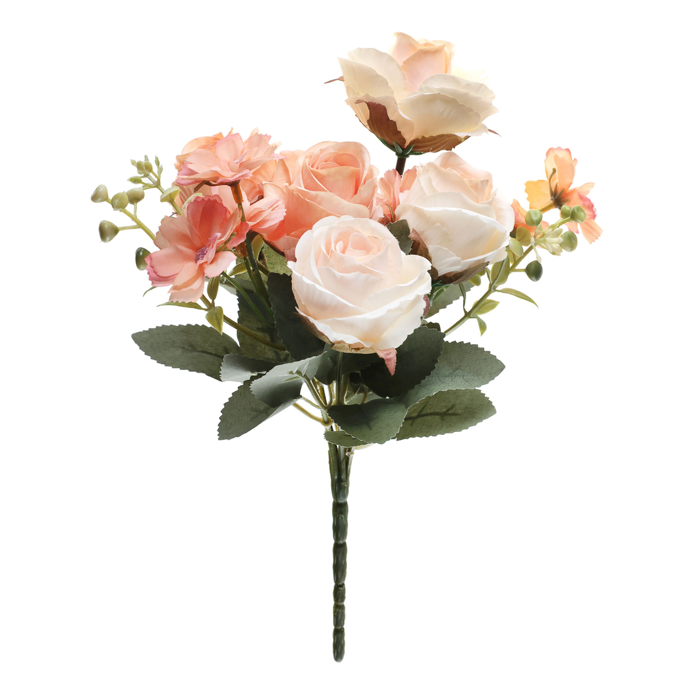 Konstgjord Blombukett Rosor Peach är en autentisk blombukett med gröna blad, små blommor och rosor i vita och persikofärgade nyanser. Vacker och romantisk som få!