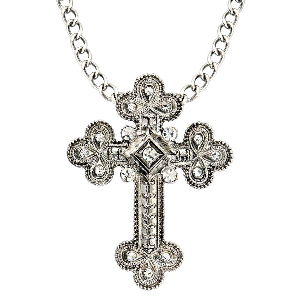 Korshalsband med Strass omfattar ett silvrigt halsband med dekorativt kors med strass. Passar vuxna.