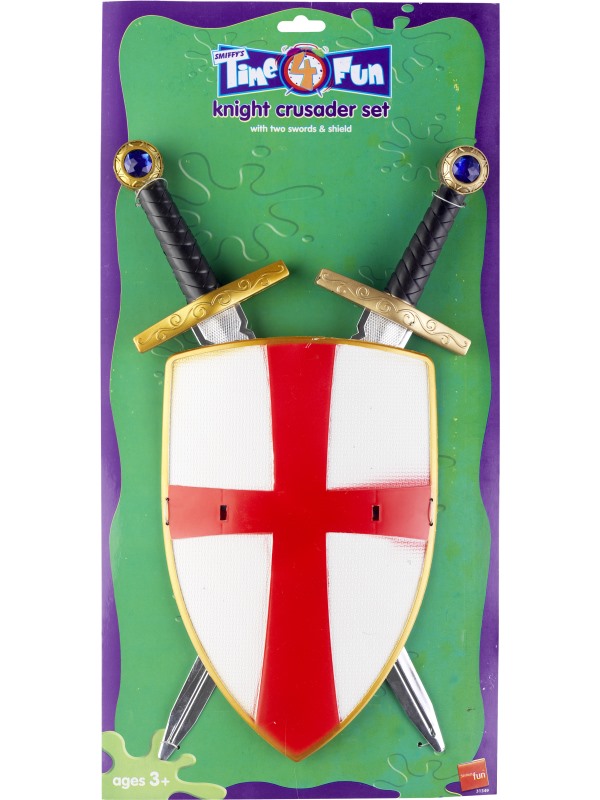 Vill du leka korståg med dina knattar? Med detta kit bestående av två svärd och tillhörande sköld, kan du och dina barn leka försvarare av det heliga landet, eller varför inte dräpa en drake eller rädda en prinsessa?