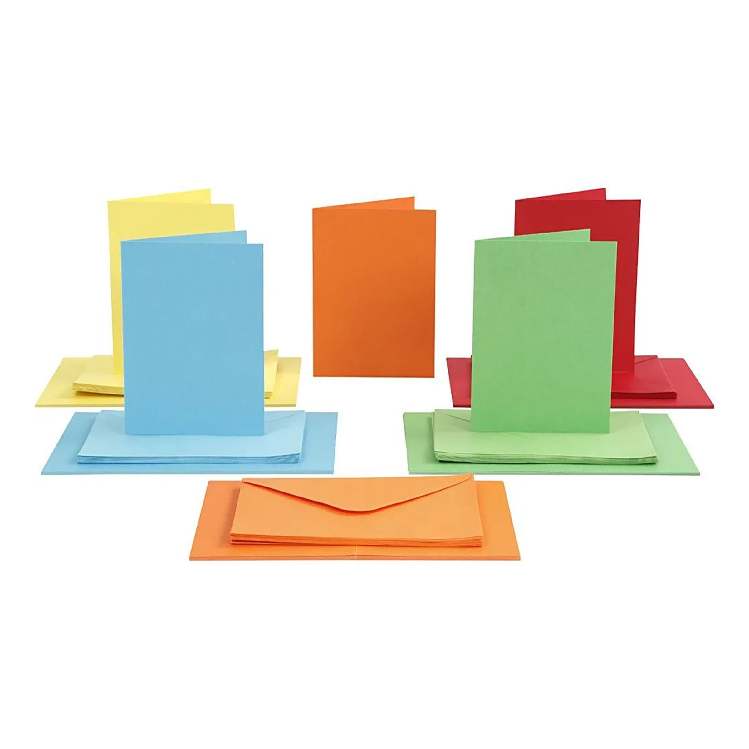 Kort och Kuvert Mixade Färger inkluderar totalt femtio kort med tillhörande kuvert i färgerna orange, blå, grön, gul och röd (tio av varje färg). Korten kommer tillverkade av tjockt och kvalitativt papper och kuverten förseglas med fukt.