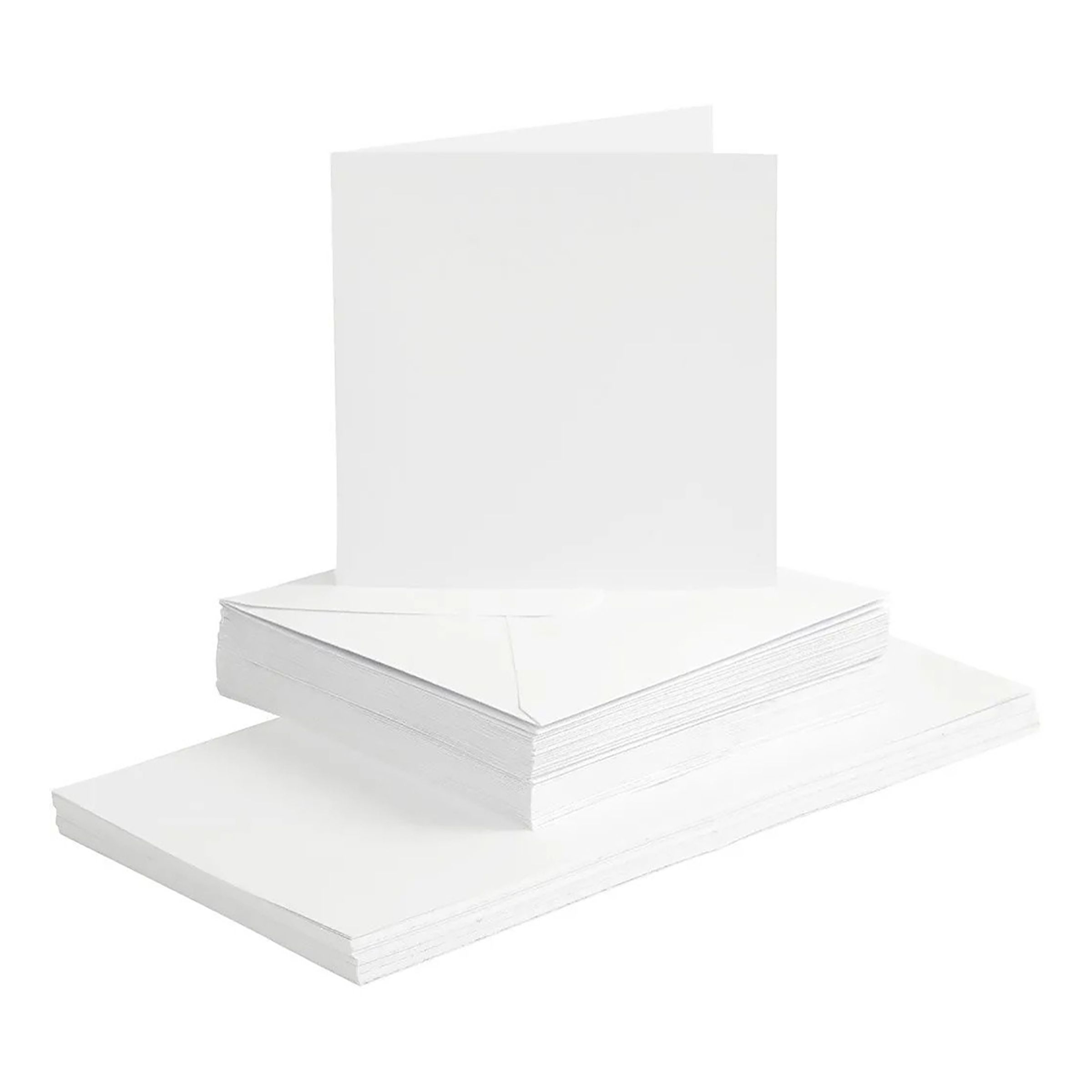 Kort och Kuvert Vit Kvadratisk inkluderar totalt femtio kvadratiska kort med tillhörande kuvert. Korten kommer tillverkade av tjockt och kvalitativt papper och kuverten förseglas med fukt.
