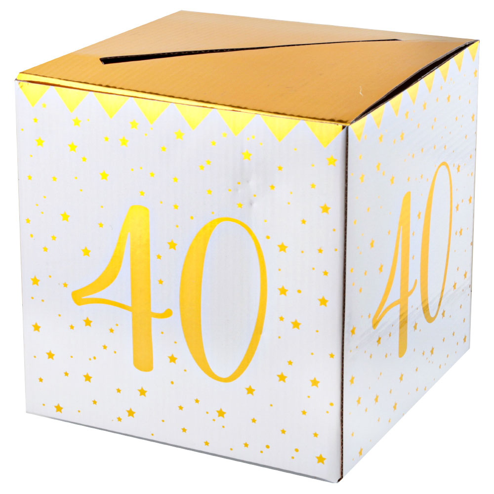 Festlig kortlåda som blir ett fint inslag till 40-års festen! Gör din födelsedag riktigt fin med denna kortbox som både blir en snygg dekoration och ett festlig tillbehör. Placera den snyggt på presentbordet och låt alla gäster lägga ner sina kort i den innan det är dags för presentöppning. Superfin kortlåda som garanterat kommer att bli en succé till 40-års firandet!