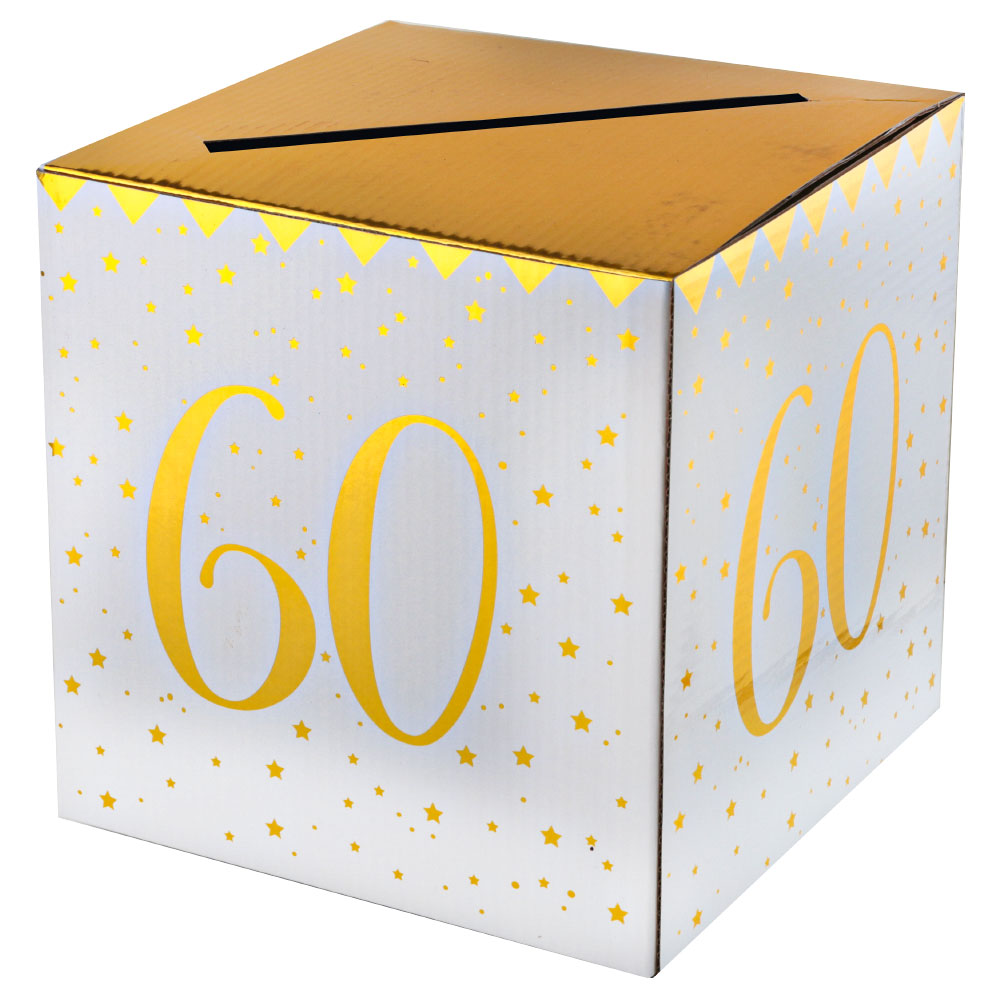 Festlig kortlåda som håller reda på alla grattiskort på ett riktigt snyggt sätt! Ställ fram denna kortbox på presentbordet och samla alla kort och kuvert på ett och samma ställe. Supersnygg kortlåda till 60-års födelsedag som blir ett toppenbra val för dig som är ute efter både dekoration och tillbehör till kommande 60-års firande.