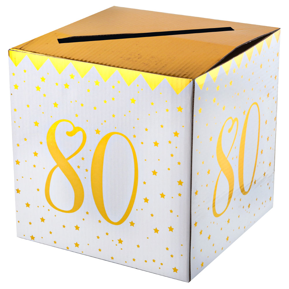 Gör din 80-års födelsedag extra härlig och pynta med denna fina kortbox som blir ett praktiskt tillbehör och en riktigt fin dekoration till firandet. Med denna kortlåda samlas enkelt alla kuvert och grattiskort på ett och samma ställe så det blir lätt att hålla reda på dem. Ett perfekt val för dig som söker snygga tillbehör till 80-års fest.