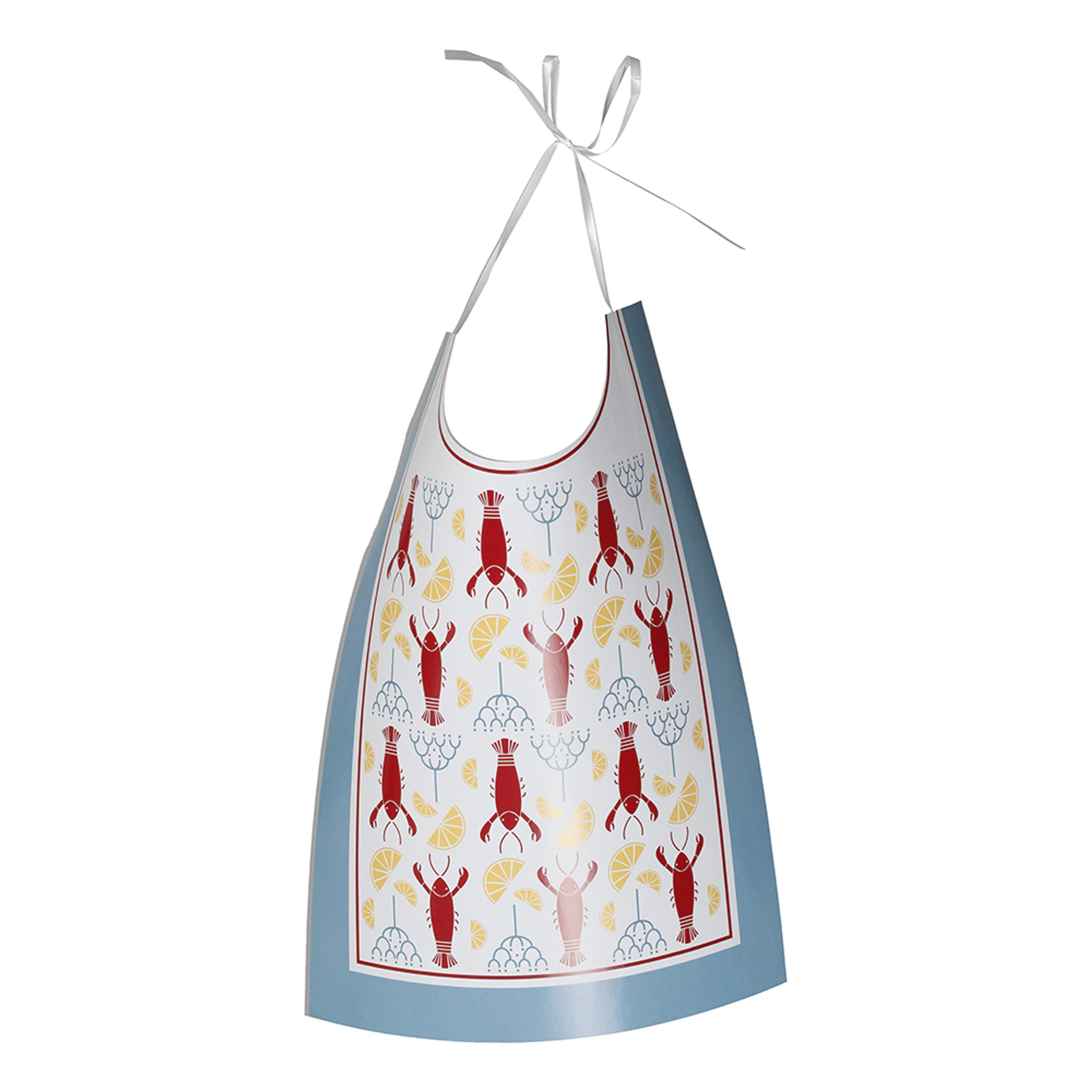 Kräfthaklapp Kräftor inkluderar fyra stycken haklappar med motiv av kräftor. Haklapparna knyts enkelt runt halsen och varje haklapp är tillverkad i papp. Kommer det fler är fyra gäster? Köp då hem fler kräfthaklappar.
