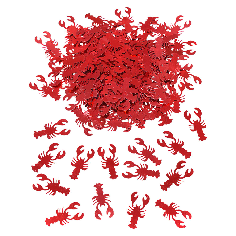 Kräftkonfetti Kräftskiva omfattar glansigt konfetti i PVC-plast i kräftmotiv. Kräftorna är glansigt röda, en kräfta är ca 3,5 cm lång. Konfettin kommer i en förpackning om 14 gram.