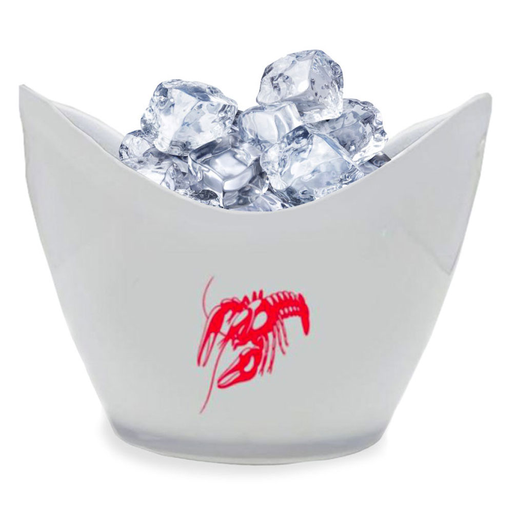 Kräftskiva Ishink innehåller en vit ishink med handtag samt röda kräftmotiv på båda sidorna.
