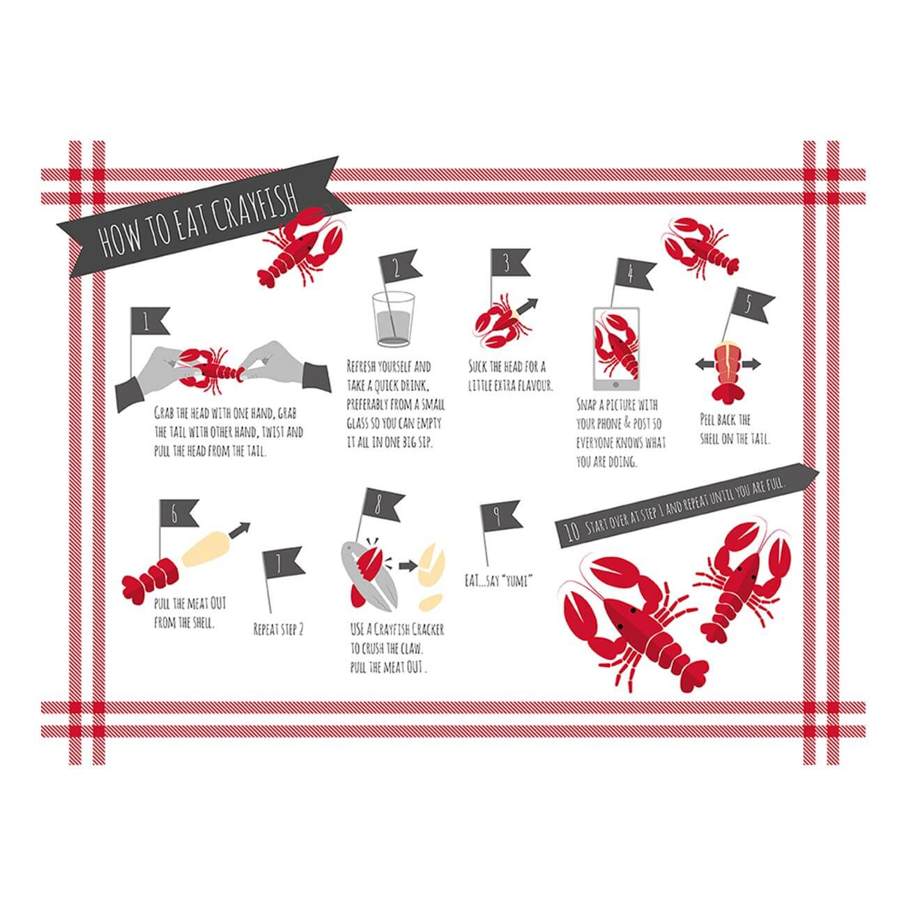 Bordstabletter i plast som hjälper dig och dina gäster med hur man äter kräftorna. Den är inte bara praktisk utan även ett kul inslag till dukningen.