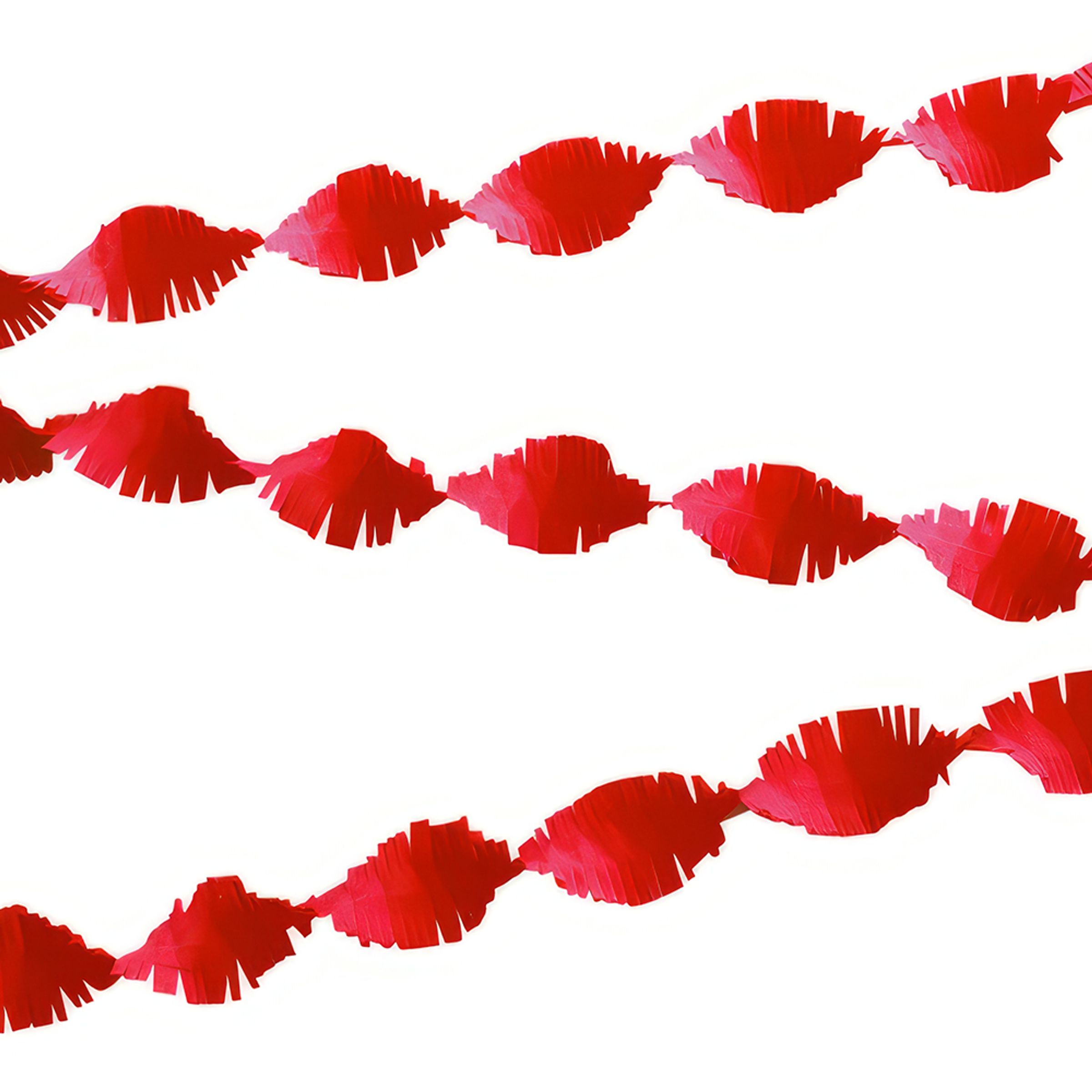 Kräppgirlang Röd är en klassisk girlang i en snygg, röd färg som du enkelt fäster där du vill ha den. Den är flamsäker och kommer i två olika storlekar.