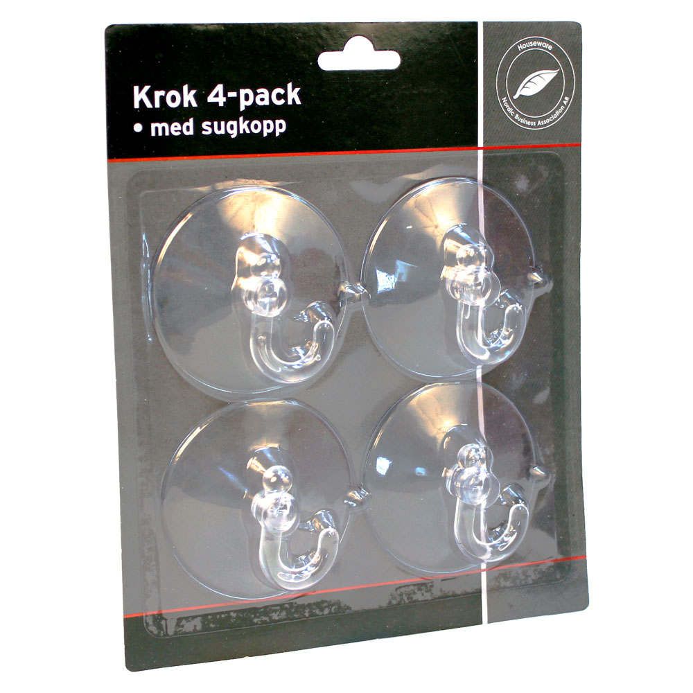 Krokar med Sugpropp omfattar ett 4-pack sugproppskrokar av plast och gummi. Krokarna är ca 7 cm stora och kan vikas åt sidorna.