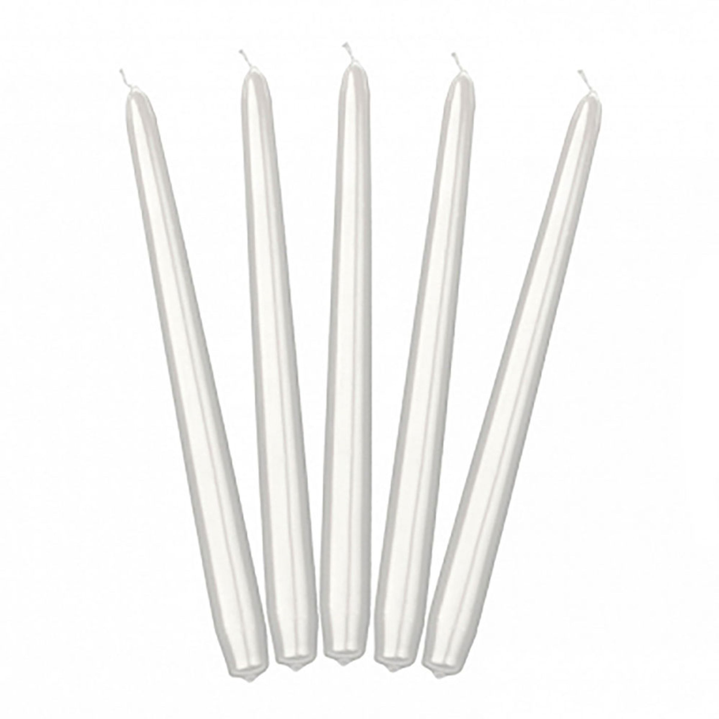 Kronljus Vit Metallic är långa, avsmalnade ljus, med en pärlvit metallic-finish. Passar utmärkt att använda som en stämningsfull dekoration till exempelvis födelsedagskalaset, julfesten eller nyårsfirandet!