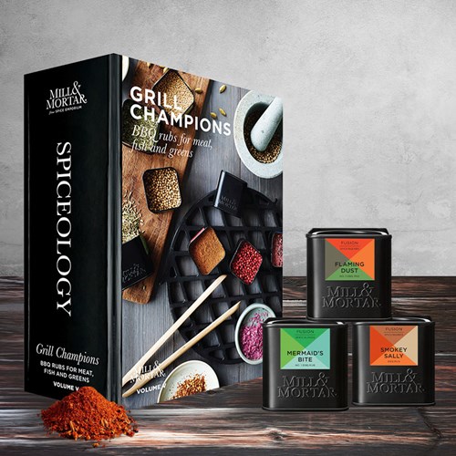 Inkluderar 3 plåtburkar med kryddor: 50 g flaming dust, 50 g mermaids bite och 50 g smokey sally.