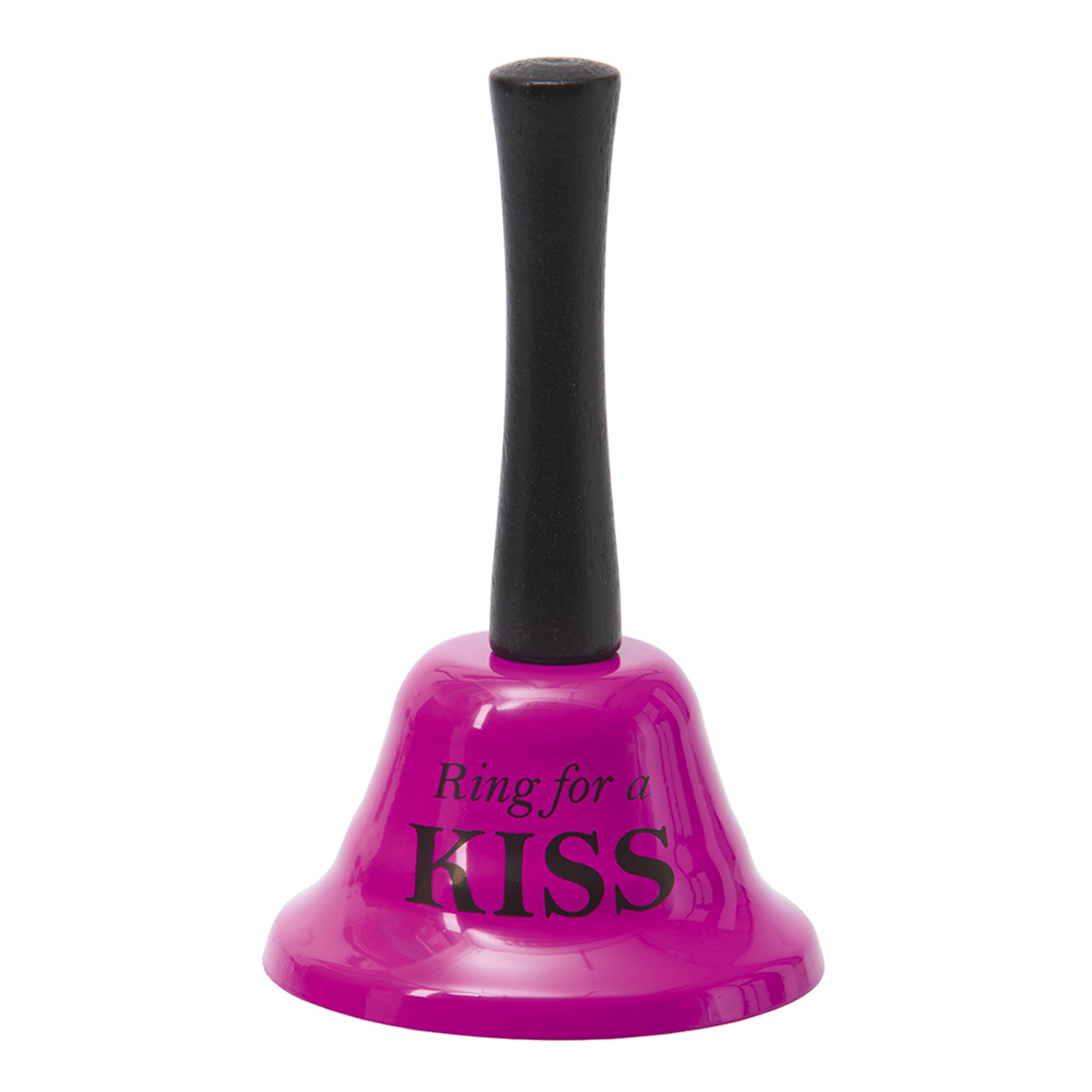 En Kyssklocka är en rolig pryl som signalerar det du vill ha på ett enkelt och kort sätt. Här är det bara att ringa för att få det man vill ha. Kanske är du blyg? Ja, då kan du låta klockan tala för dig. Klockan har en lila färg och det står "Ring for a kiss" på den.