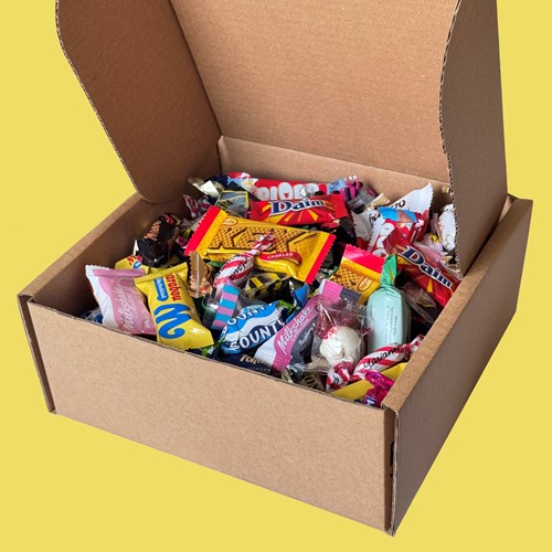 Eller unna dig själv lite fredagsmys! Ibland är klassikerna helt enkelt svåra att slå – och vem kan motstå en låda fylld med Kexchoklad, Twix, Plopp, Dumle, Werthers Original och Marianne? Njut av favoriterna tillsammans med små kolor och lakritspatroner.