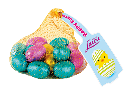 Ett underbart nät med färgglada och folierade påskägg av mjölkchoklad. Äggen är fyllda med supergod chokladcreme. Perfekta att pynta med, gömma, leka med men framförallt äta!
