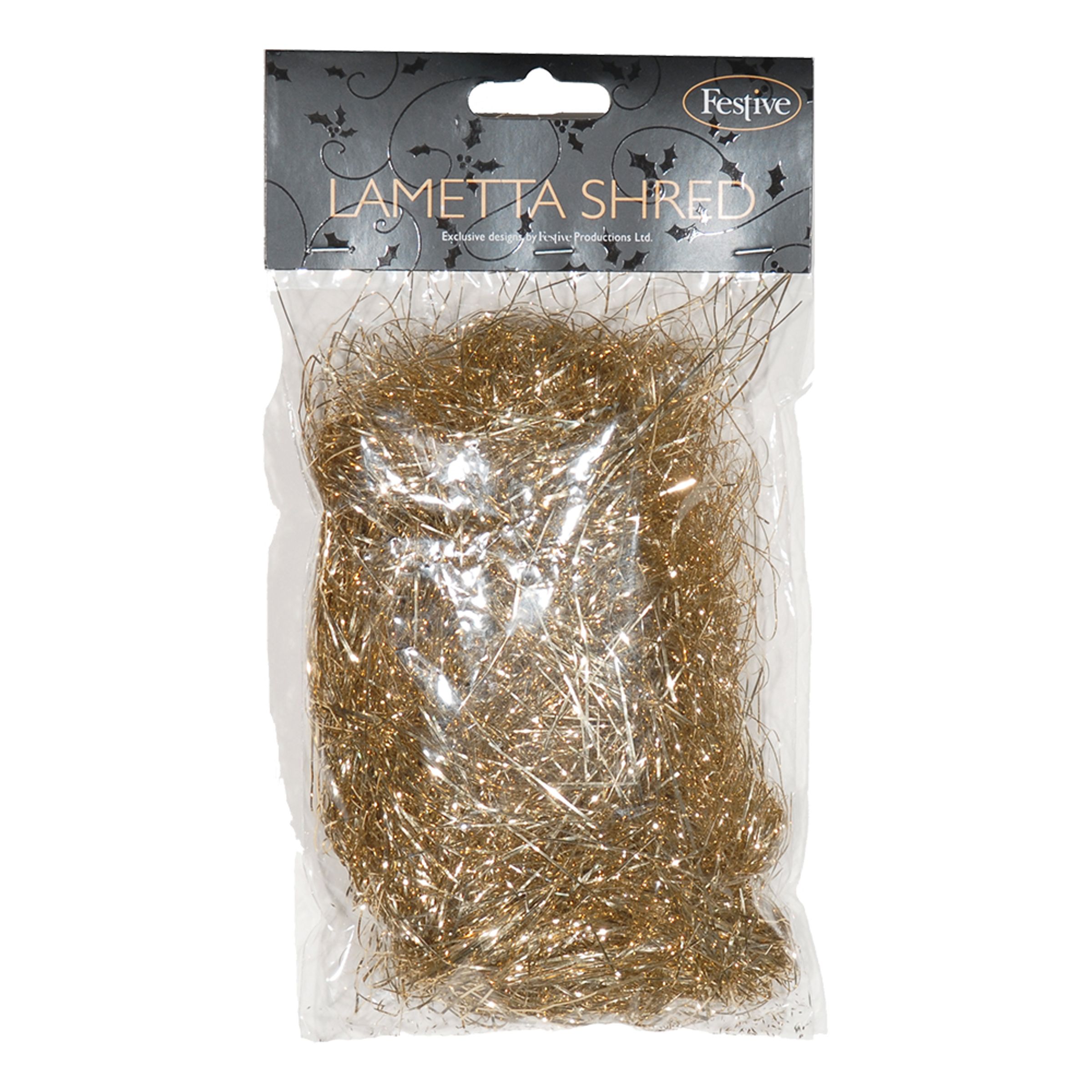Lamettatråd Guld inkluderar en påse med guldfärgad lamettatråd för olika typer av dekorationer. Tråden är tillverkad i plast.