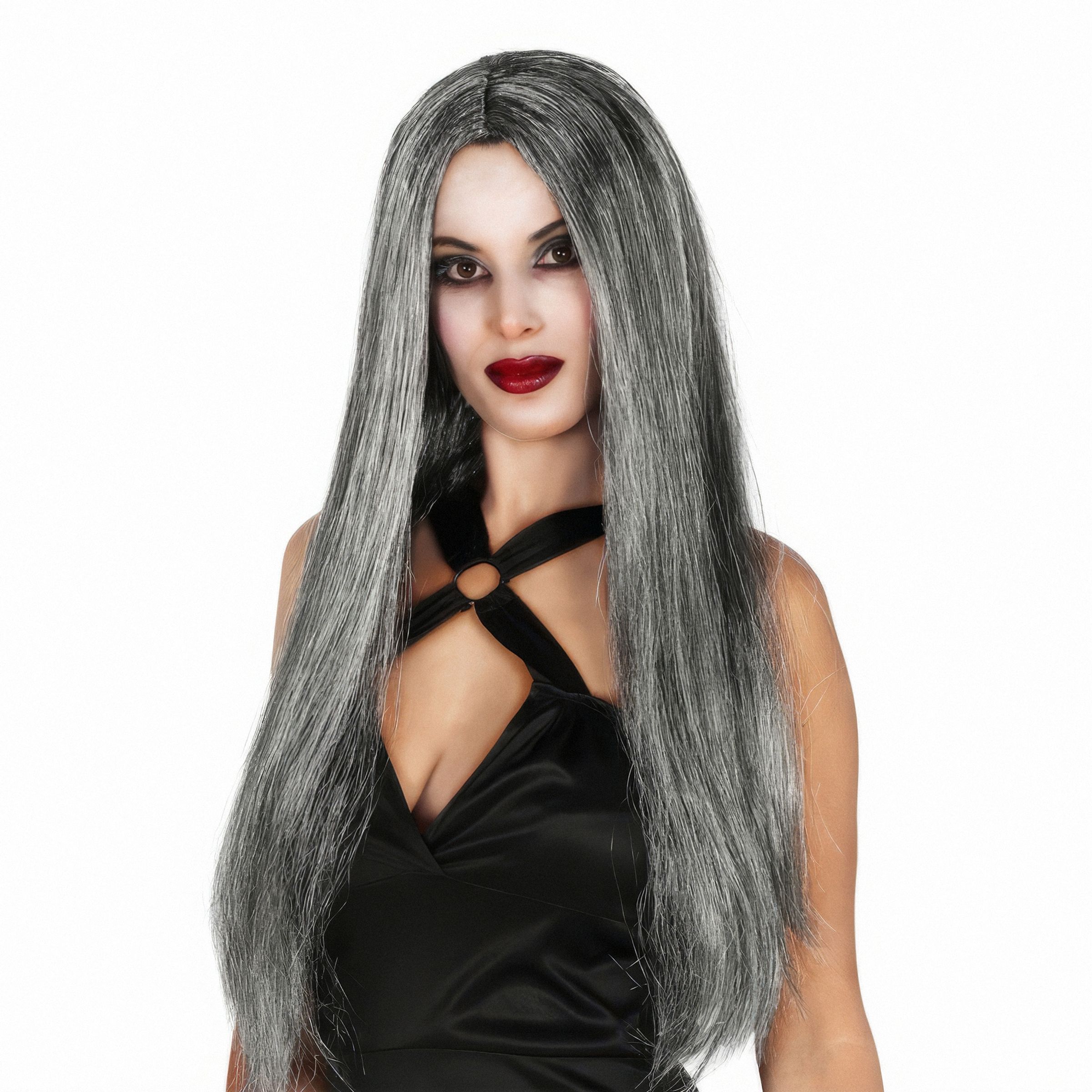 Lång Grå Peruk är en peruk med långt grått hår som passar perfekt när du ska klä ut dig till exempelvis en läskig vålnad eller en gammal skrumpen häxa. Endast peruken medföljer så vi rekommenderar att du kompletterar peruken med ett hårnät.