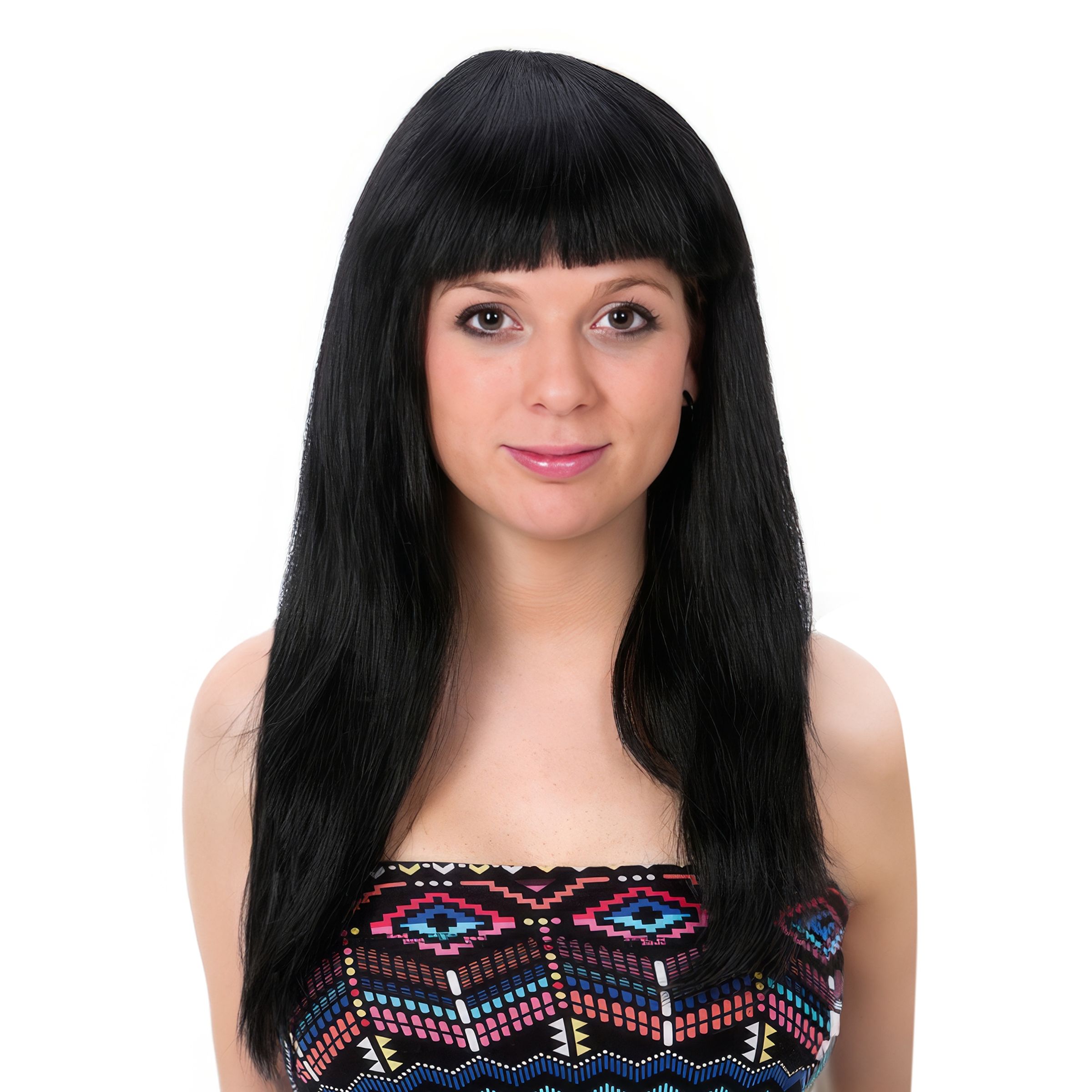 Vad har den svenska popartisten Loreen genemsant med Cleopatra? Svart är så klart denna frisyr som blivit mycket populär. Lång svart peruk med rak lugg. One size (vuxenstorlek).