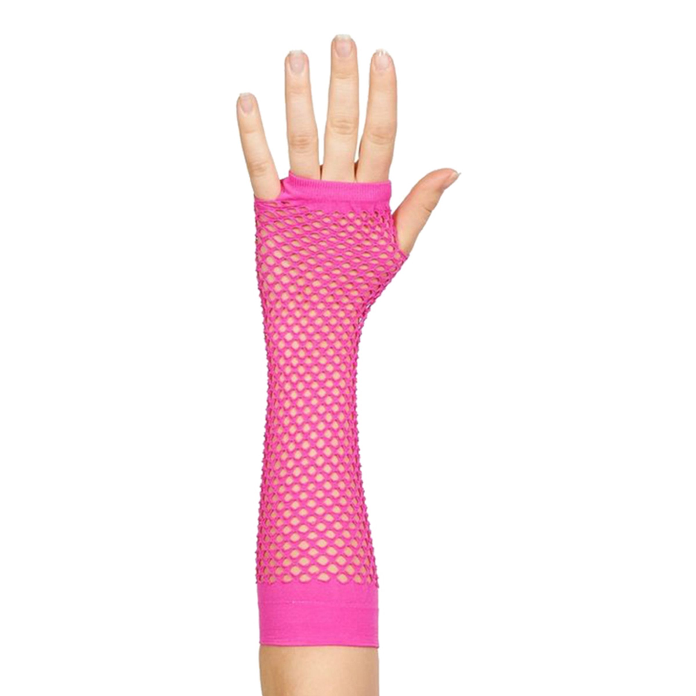 Coola långa fingerlösa näthandskar i fyra olika färger. Handskarna är färgade med en speciell UV-färg som lyser i direkt UV-ljus (t.ex på krogen eller under en UV-lampa). Säljes parvis med två i ett
