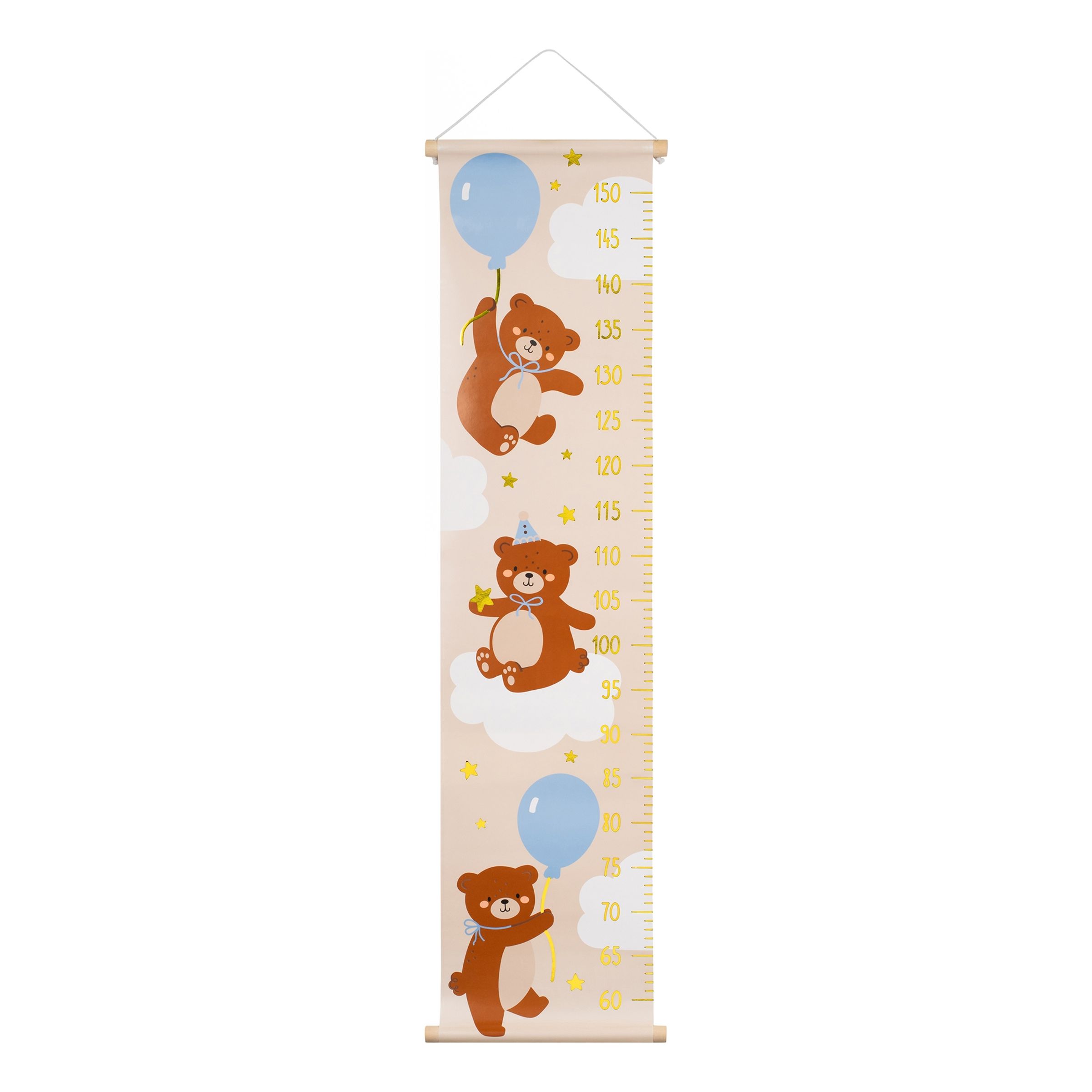 Längdmätare för Vägg Björn är ett höjdmått med motiv av gulliga nallar. Längdmätaren innehåller mått från 60 till 150 cm.