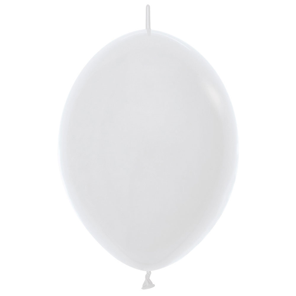 Länkande Latexballonger Vit består av länkande latexballonger i vitt som binds ihop för att skapa en dekoration.