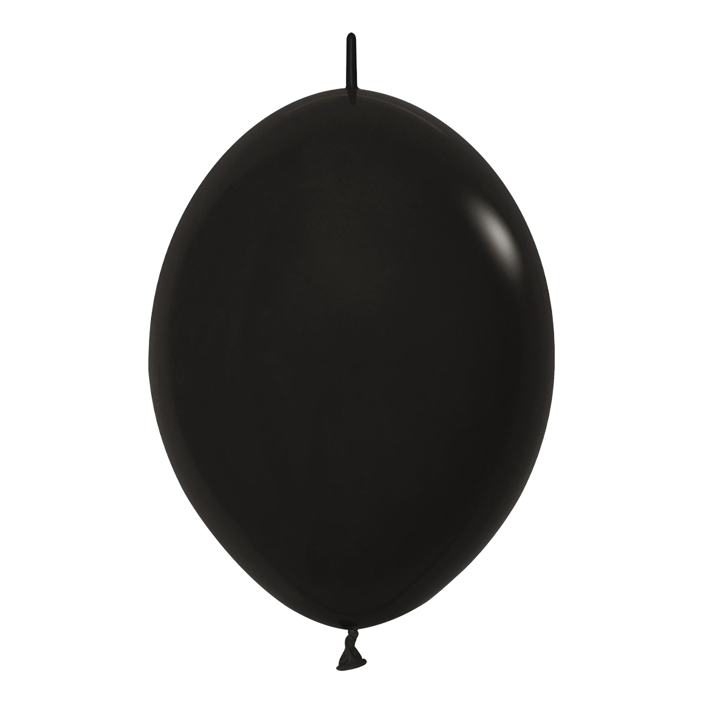 Länkballonger Svart är latexballonger som kommer med ett extra långt munstycke och flärp på toppen som gör att de lätt kan bindas ihop till en lång kedja för att bilda en läcker ballonggirlang / ballongkedja / ballongbåge. Fyll enkelt ballongerna med luft, bind och dekorera fritt!