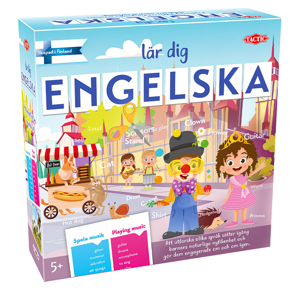 Lär Dig Engelska Barnspel består av ett spel som utvecklar det engelska ordförrådet hos barn med hjälp av 24 stycken bildbrickor med 8 stycken ord på varje, skrivet på svenska och engelska. Passande från 5 års ålder.