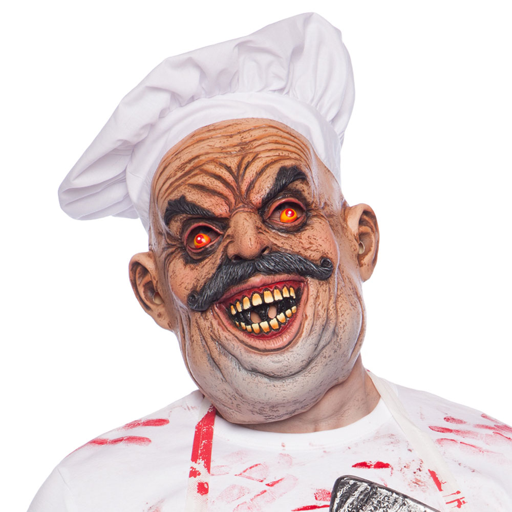Vet du inte vad du ska klä ut dig till på Halloween så har vi svaret, en obehaglig kock såklart! Denna läskiga mask ser ut som en galen kock, perfekt tema och mask till Halloween utklädnad och maskerad. Med denna latexmask kan du skapa en hel karaktär, vem vet vad denna kock har i sin soppa?
