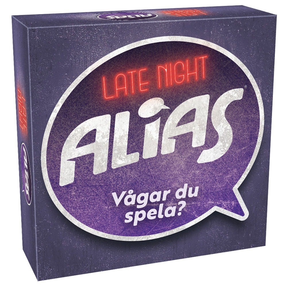 Late Night Alias är ett spel för vuxna som går ut på att släppa alla hämningar och rannsaka hjärnan på synonymer. Här gäller det att förklara och gissa ord som kan få en att skruva på sig, men för att vinna gäller det att inte vara blyg! Ta ett kort, läs ordet och våga förklara det. Beskriv ordet utan att säga det högt. Under tiden ska de andra spelarna försöka bli först med att gissa rätt.