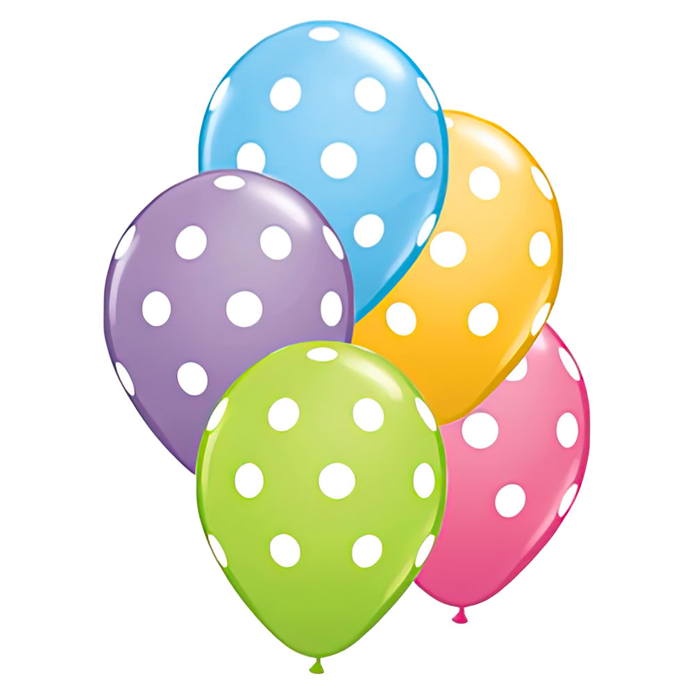 Ett härligt prickigt mönster kan genast liva upp ditt kalas så tveka inte på att pynta med just dessa snyggt prickiga ballonger! Festliga latexballonger i snygga färger som passar riktigt fint in på många olika kalas. Blås upp dem och sätt ihop dem till en fin ballongdekoration eller sprid ut dem snyggt över hela firandet.