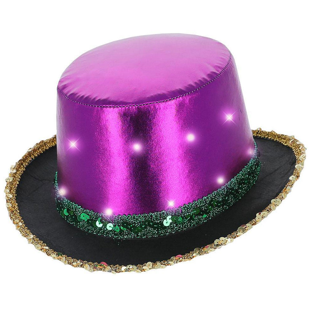 Info om LED Hög Hatt Metallisk Mardi Gras: