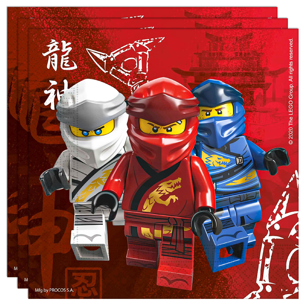 Lego Ninjago Servetter består av ett 20-pack servetter med Lego Ninjago motiv. Servetterna mäter 33 x 33 cm utvikta och har 2 lager.