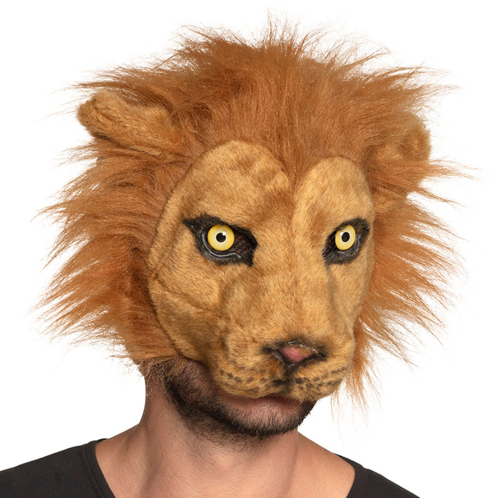 Lejon Halvmask innehåller en halvmask som föreställer ett lejon med utstickande nos, mjuka öron och fluffig man. Masken har nät vid ögonen som du kan se ut genom samt ett elastiskt band i sidorna som håller den på plats. Tillverkad av plast och plysch.