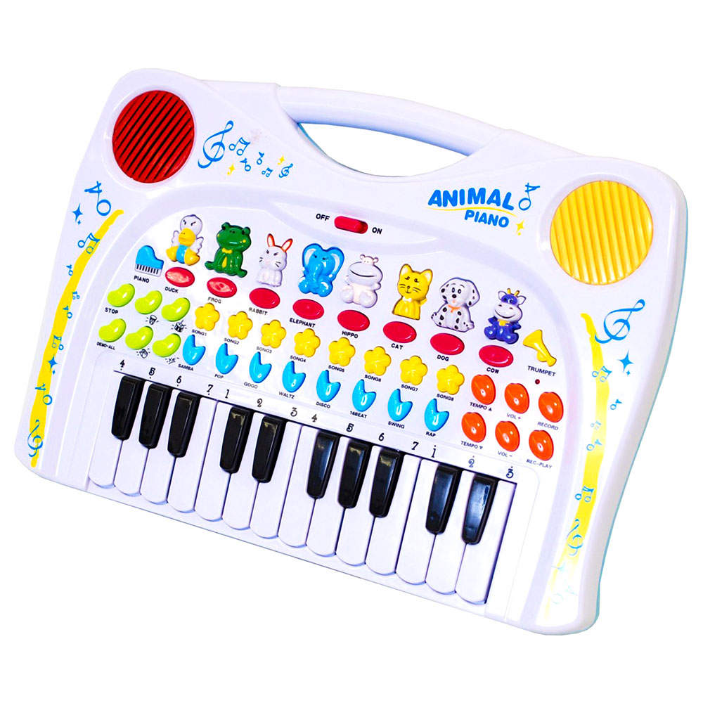 Spela upp en lekfull melodi och roliga djurläten med detta häftiga leksakspiano! Ett riktigt skojigt barnpiano med flera olika instrumentljud, djurläten, melodier och andra spännande funktioner som låter barnet leka och skoja med musik, ljud och melodier. Roligt piano som blir en perfekt present eller julklapp till alla barn som gillar musik och roliga ljud.