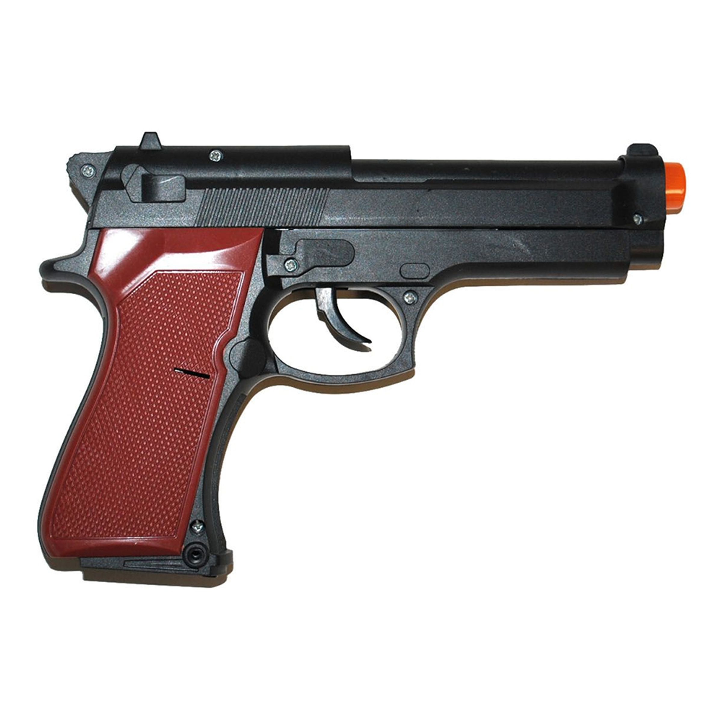 Leksakspistol med Ljud och Ljus en en pistol på ca 20 cm som drivs av två AA batterier (ingår ej). Pang, pang.