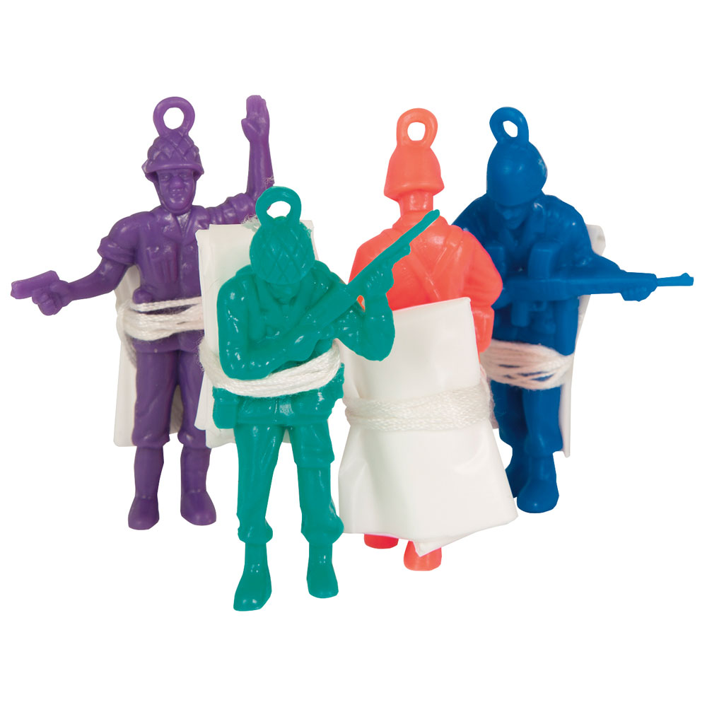 Stoppa ner coola leksaks-soldater med fallskärm i barnen godispåsar inför kalasets fiskdamm. Tävla om vem som kan få sin plastsoldat att flyga längst med sin fallskärm!