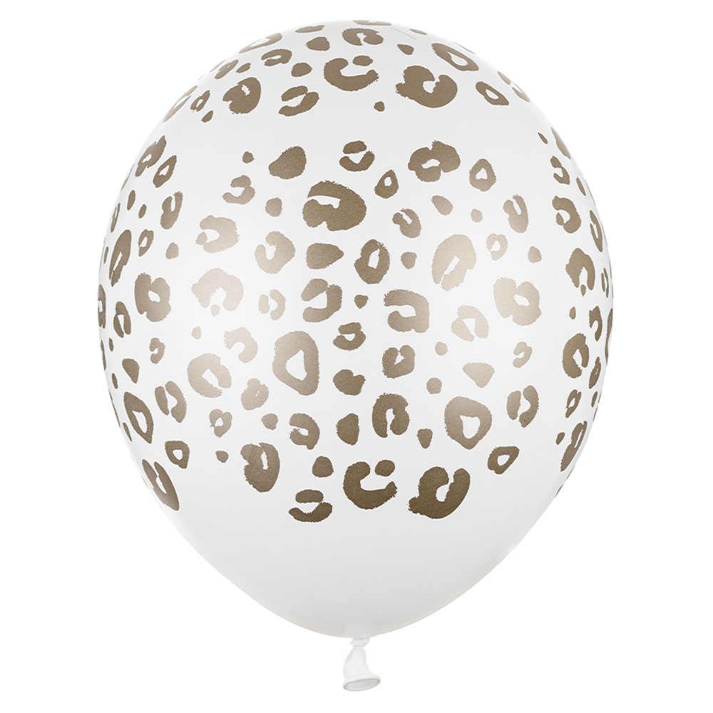 Få till den rätta partystämningen med dessa snygga leopard-ballonger! Häftiga latexballonger i vitt med snygga leopardmönster i guld som garanterat blir en riktigt festlig dekoration till ditt firande. De kan även snyggt mixas och matchas med andra djurballonger för en riktigt häftig ballongdekoration i djurtema. Superfina ballonger som är ett utmärkt val för dig som vill pynta och dekorera festen med snygga djurmönster!