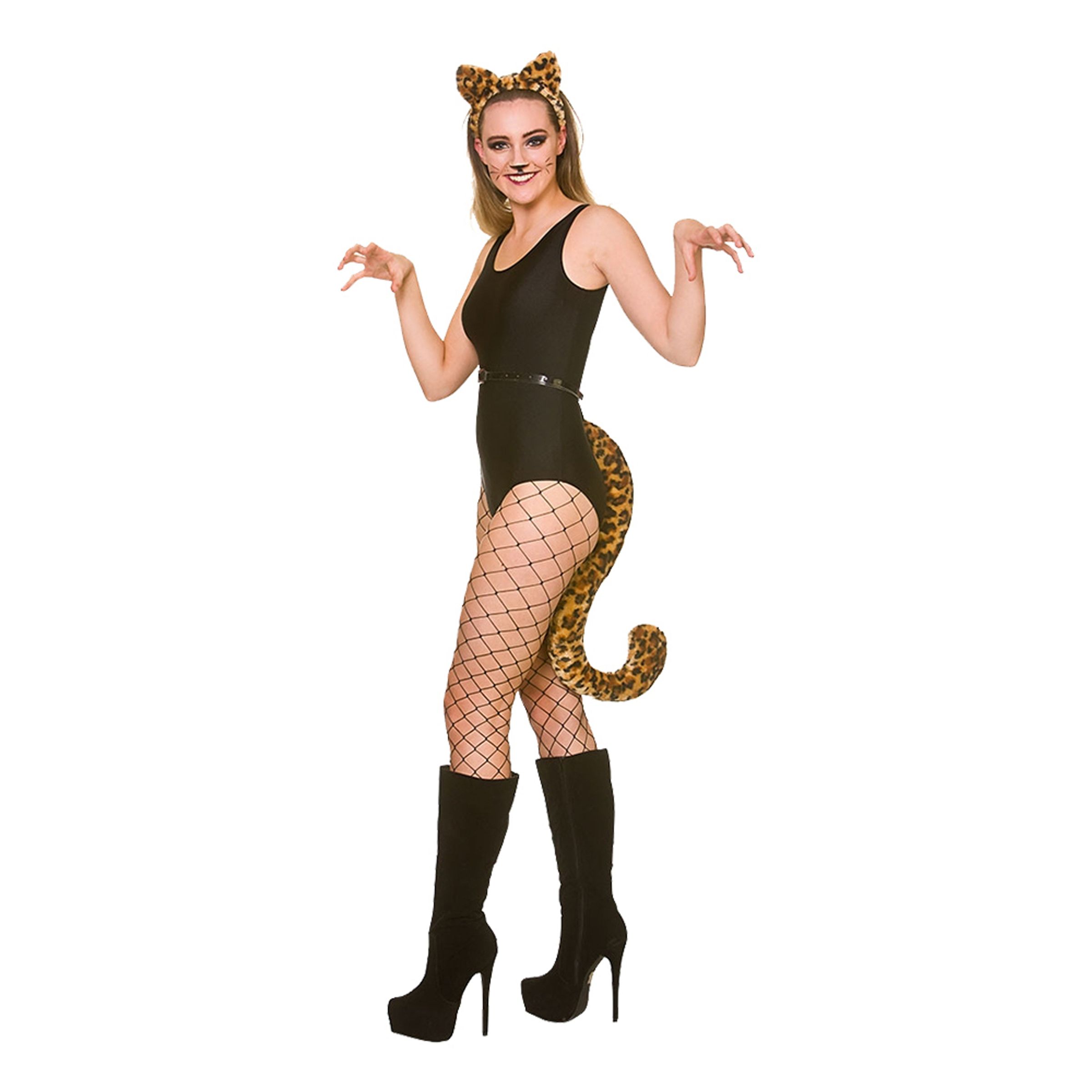 Med Leopard Tillbehörskit kan du skapa en outfit med mycket klös i! Det finns många tillfällen då man vill klä ut sig till detta farliga, eller snälla, djur och med dessa tillbehör så kommer det gå galant. Kombinera dem med olika kläder för att uppnå olika resultat beroende på vad det är för fest som nalkas. Vill du bli en superhjälte kan en svart body och en mantel göra susen. Är det halloween kanske du vill lägga till vassa tänder och lite fejkblod. Här får du ett set med många möjligheter.