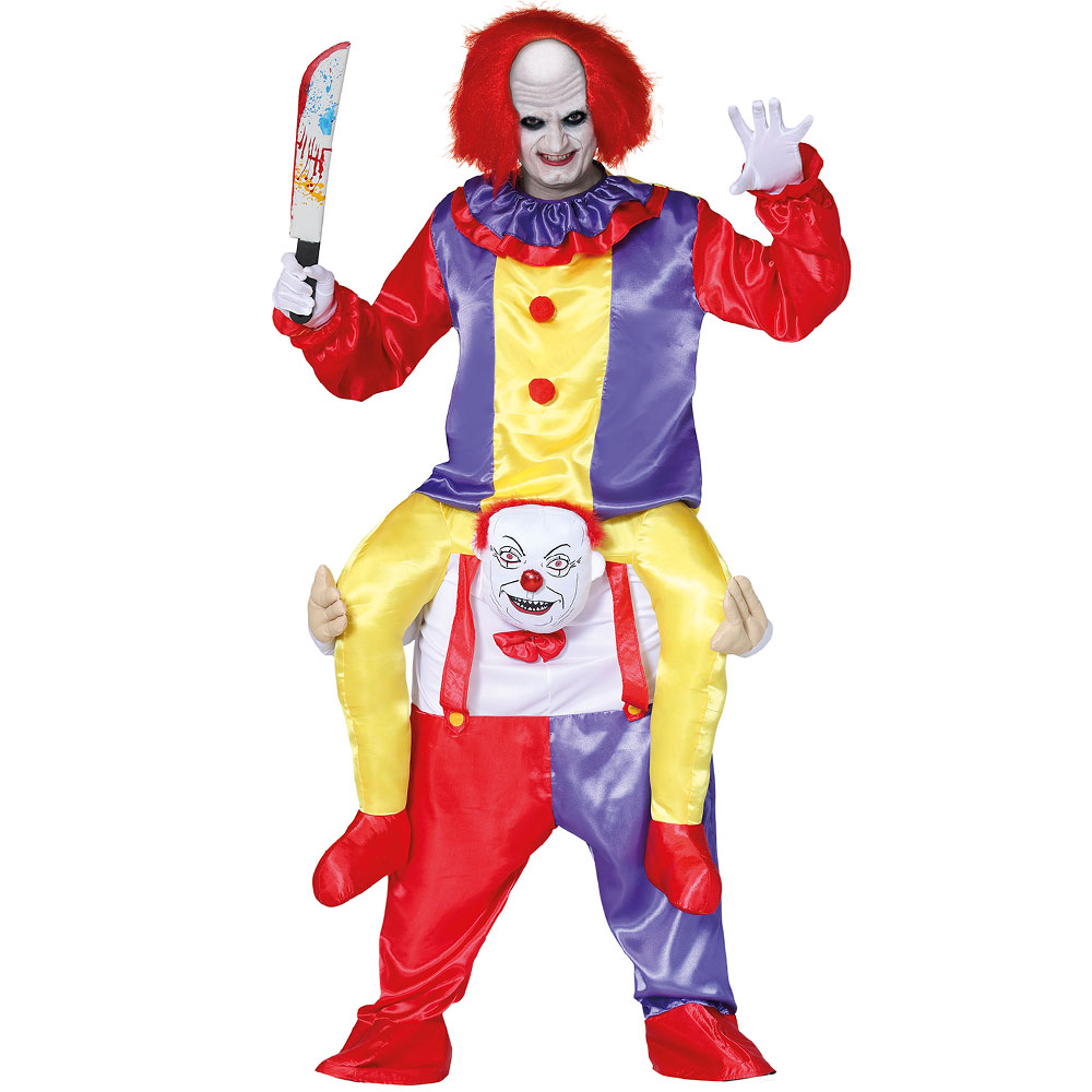 Kliv in på halloween i en oförglömlig clowndräkt. Med denna carry me dräkt eller utklädnad kommer du att framstå som om en clown bär dig runt på nästa halloween eller maskerad. Perfekt som carry me maskeraddräkt och garanterad succé!