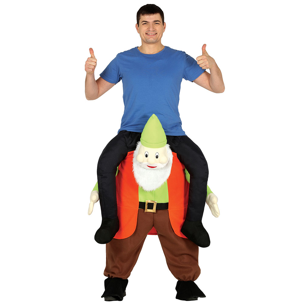 För en oförglömlig maskerad eller Halloween, klä dig i denna fantastiska carry me dräkt med motiv av en dvärg. Denna carry me maskeraddräkt eller dvärgdräkt ger illusionen att du bärs runt och är perfekt för att imponera på Halloween.