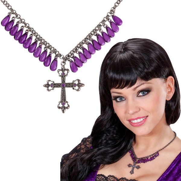 Info om Lila Gothic Halsband med Kors: