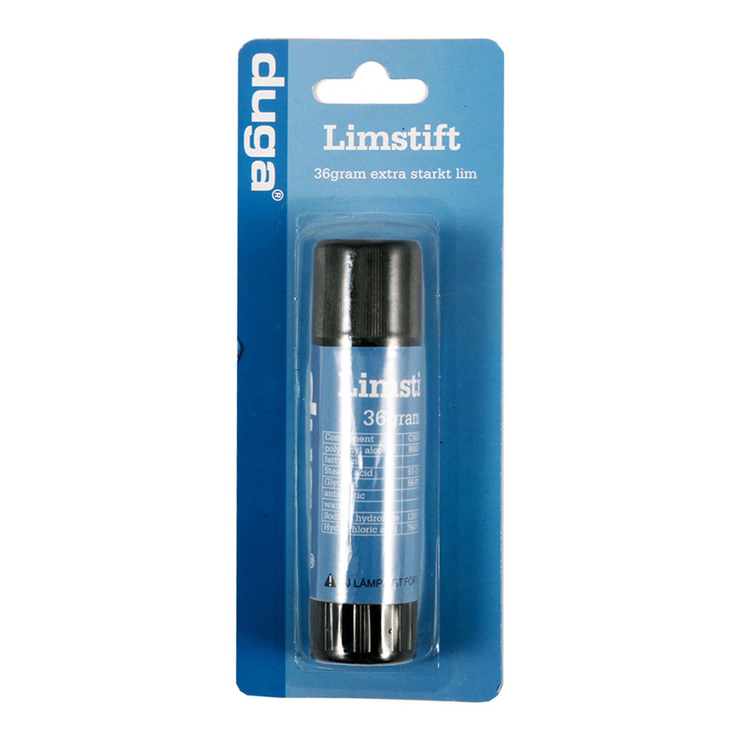 Limstift Extra Starkt är ett lim i stiftform för universalbruk. Du kan använda limstiftet på bland annat papper, trä, kartong, filt, foto, kork, metall m.m. Låt det få möjlighet att fixera sig en stund efter att du applicerat det på materialet. När limmet torkar blir det genomskinligt.