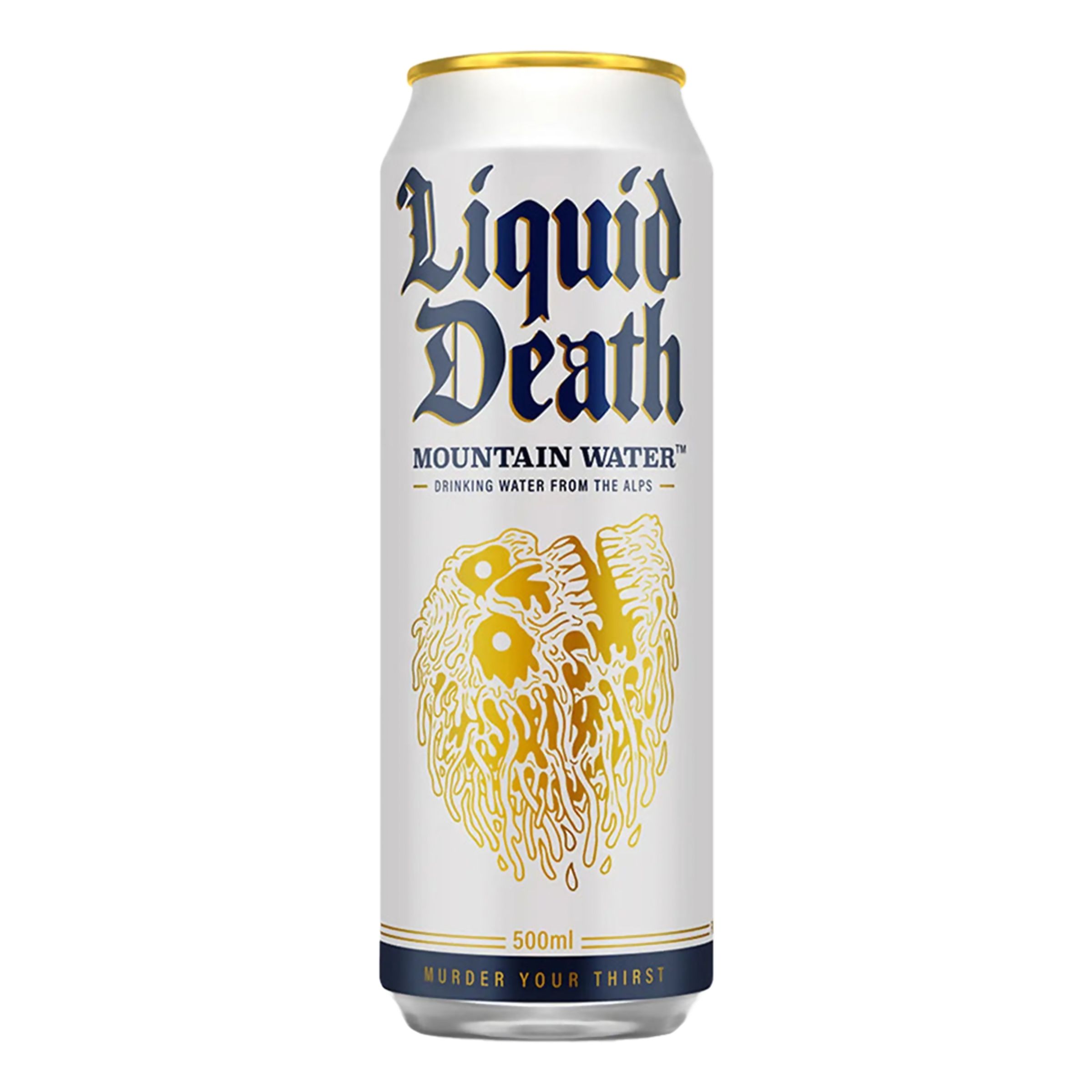 Liquid Death Still Water är bergsvatten från alperna som kommer med naturligt förekommande mineraler och elektrolyter.