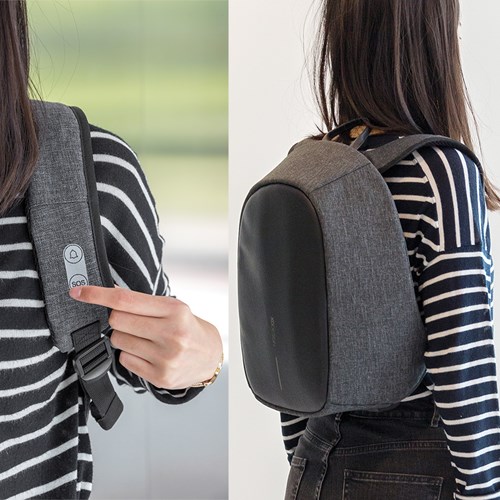 Förutom personlarm är ryggsäcken utrustad med smarta, anti stöld-funktioner. Ryggsäcken är tillverkad i ett inbrottssäkert material som inte kan skäras sönder, är försedd med dolda dragkedjor och har en huvudöppning och ett hemligt fack på ryggsäckens baksida som förhindrar ficktjuvarna att stjäla dina värdesaker.