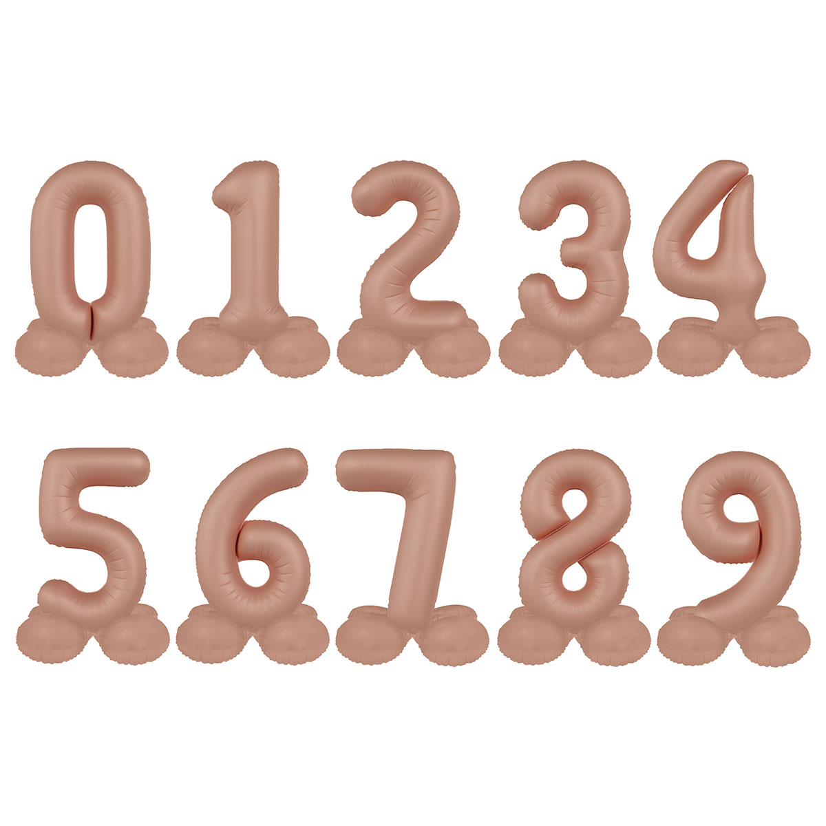 Liten Stående Sifferballong Gammalrosa Matt omfattar en liten stående sifferballong i en matt gammalrosa nyans. Ballongen fylls med luft med hjälp av det medföljande sugröret.