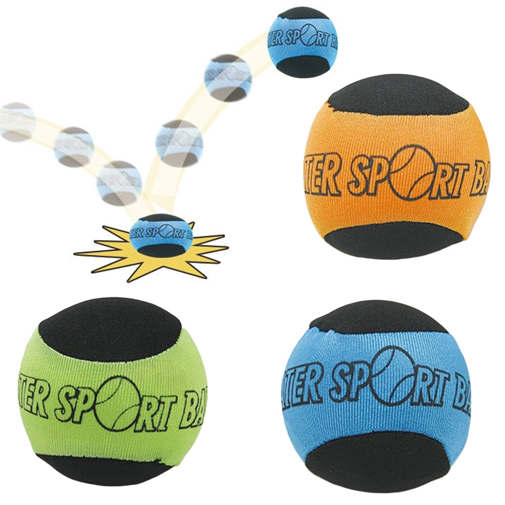 Liten Vattenstudsboll omfattar en liten boll som studsar på vattnet. Finns i färgerna svart/blå, svart/orange och svart/limegrön.
