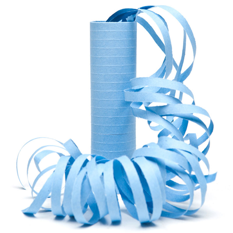 Gör ditt firande mer färgglatt och dekorativt med en rulle ljusblå serpentiner utspridda lite överallt!