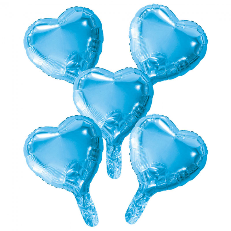 Ljusblåa Hjärtballonger 5-pack består av ett 5-pack hjärtformade folieballonger i ljusblått, samt ett papp-rör som gör det enkelt att blåsa upp ballongerna. Ballongerna är självförslutande och ska endast fyllas med luft. Mått: 23 x 23 cm. Säljs i 5-pack.